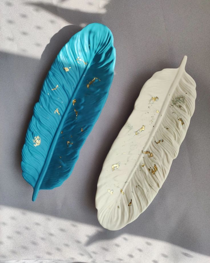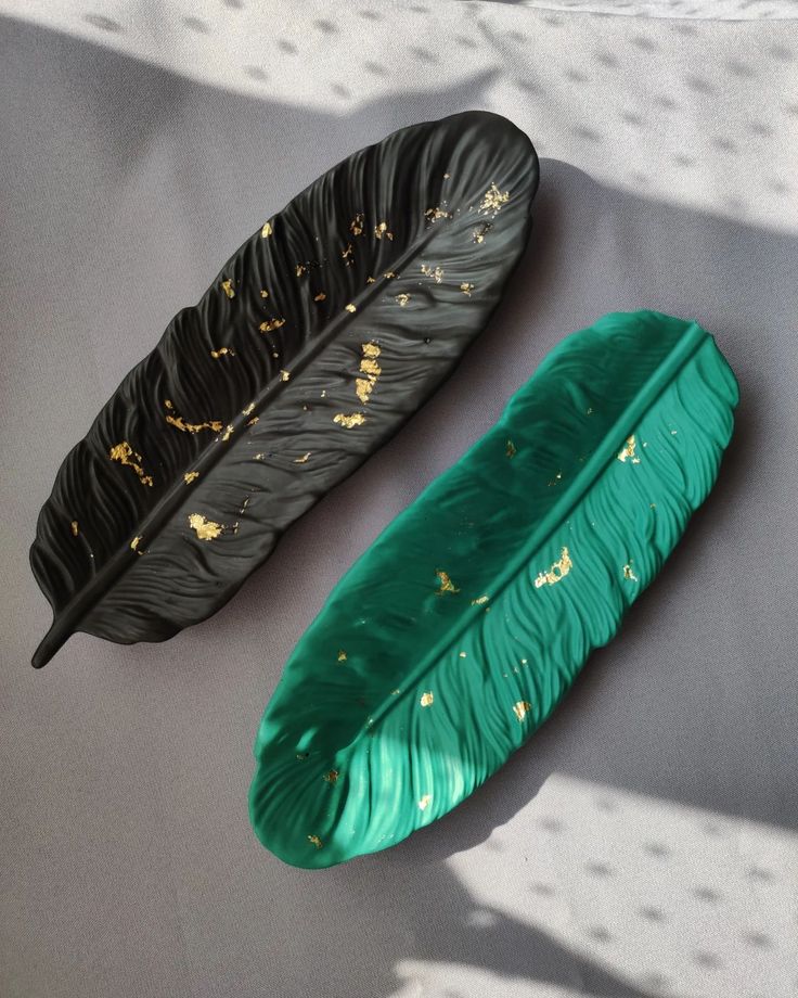 A delicate feather-shaped tray that adds elegance and charm to any space. Ideal for holding jewelry, candles, or decorative accents with a touch of nature-inspired beauty.